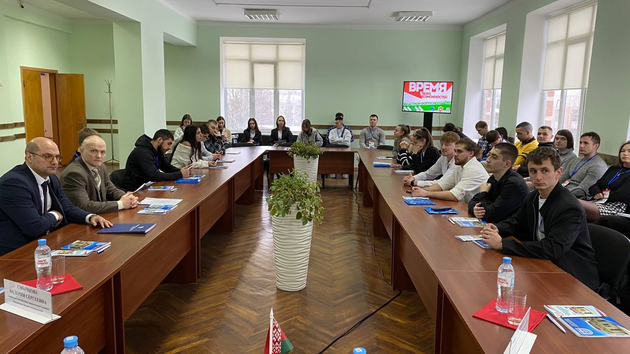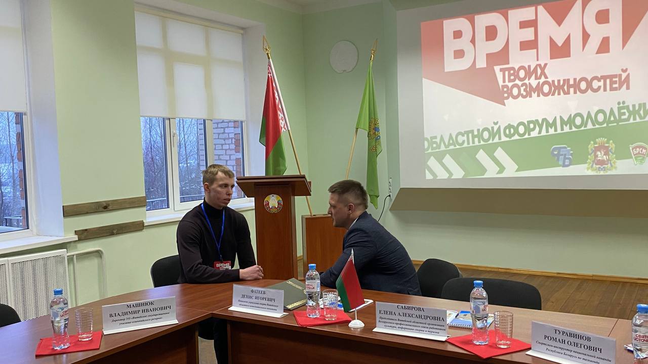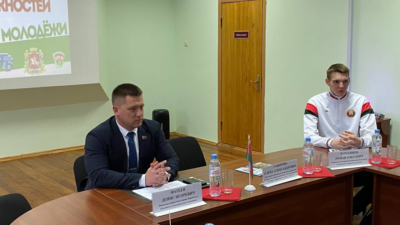 ✅В актовом зале состоялся круглый стол с начальником управления спорта Витебского облисполкома Фатеевым Денисом Игоревичем. Также приняли участие Сабирова Е.А., председатель Витебской областной профсоюзной организации БПСРКИСиТ, а также наши выпускники — Роман Туравинов и Валерия Смычкова.